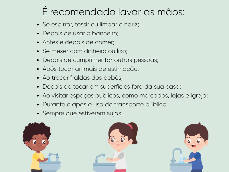 De acordo com a OMS (Organização Mundial da Saúde), estar com as mãos sempre limpinhas reduz em até 40% o risco de contrair conjuntivite, diarreia, dor de garganta, infecção estomacal, herpes, gripe, entre outras.