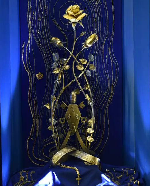 O Santuário Nacional de Aparecida já recebeu três Rosas de Ouro, uma das maiores honrarias oferecidas por Papas a santuários marianos. O presente é uma escultura em ouro puro que simboliza fé, devoção e reconhecimento. Paulo VI ofertou a primeira em 1967, Bento XVI a segunda em 2007, e Francisco a terceira em 2017. As Rosas estão guardadas no museu do Santuário.
