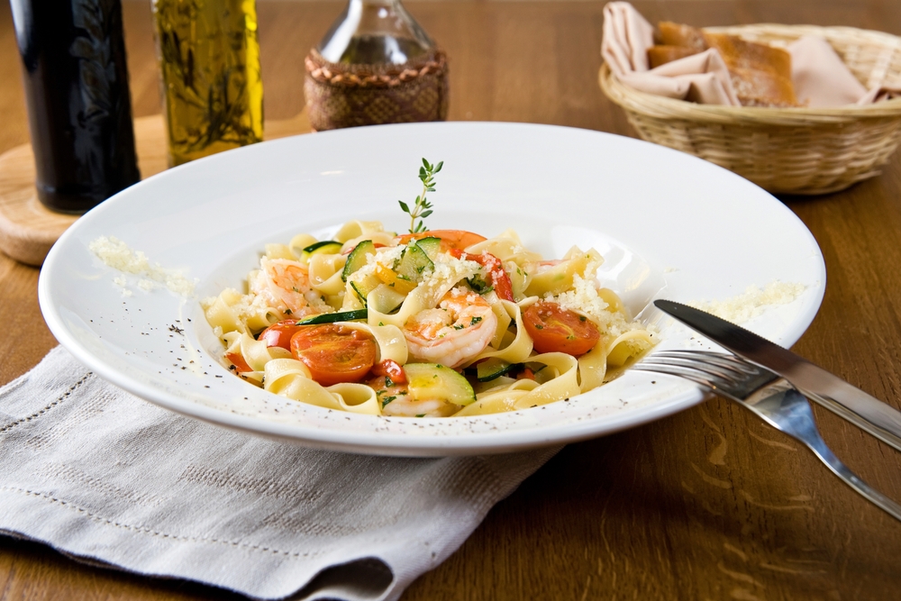Feito com fettuccine, camarões, abobrinhas e creme de leite, o Fettuccine Porto Vieste tem um toque de conhaque e açafrão, que realça o aroma e dá cor ao molho.